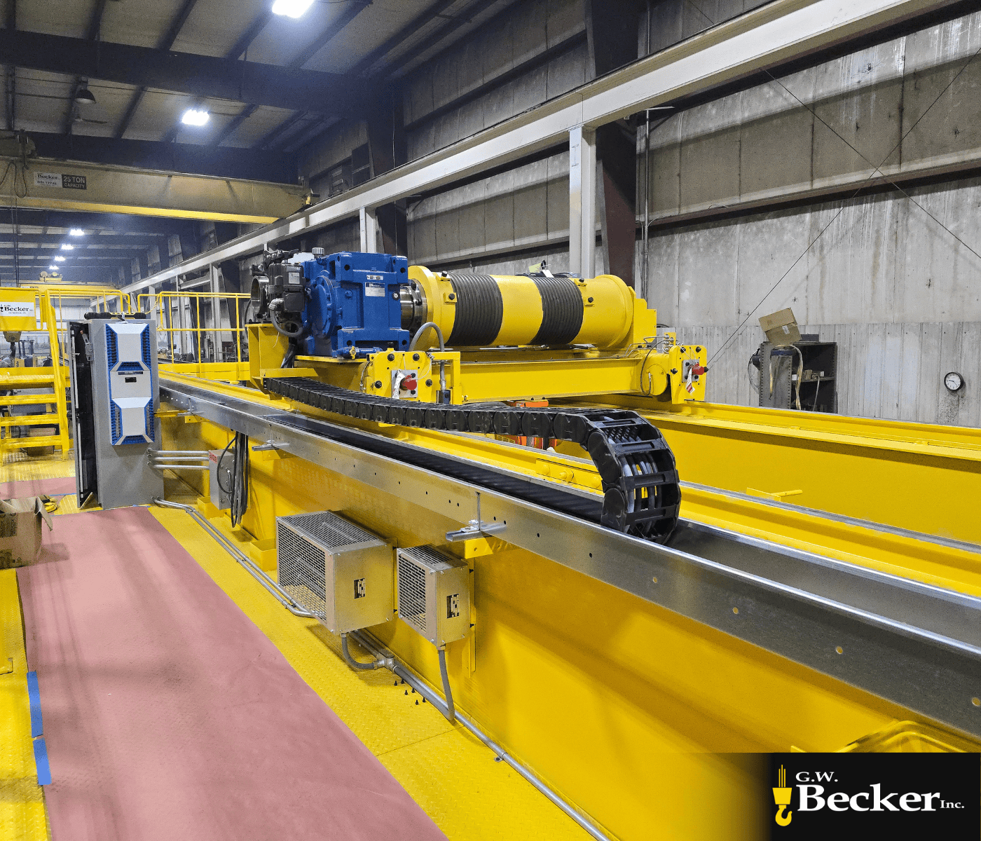 The system features variable frequency control on the bridge and trolley, and flux vector control on the hoist for exceptional precision and torque control. Operator convenience and safety are enhanced through radio remote operation with pendant backup, motion-activated warnings, and red LED drop zone lights for visual awareness during operation.