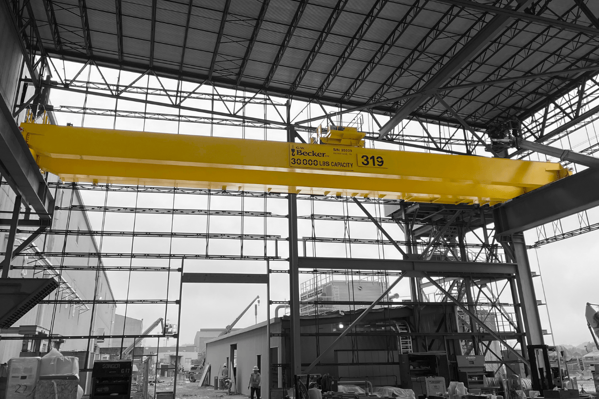 This crane was engineered and manufactured for heavy-duty service in a demanding environment. Designed for an 81’-0” span and 55’-0” lift, it operates on a 460 VAC / 3 phase / 60 Hz power supply and is controlled by a belly box style radio system. Built for CMAA Class D service, the crane is capable of reliable performance in ambient operating temperatures from 40°F to 120°F. The system was designed and manufactured to meet all current CMAA, OSHA, ANSI/ASME, and NEC specifications.