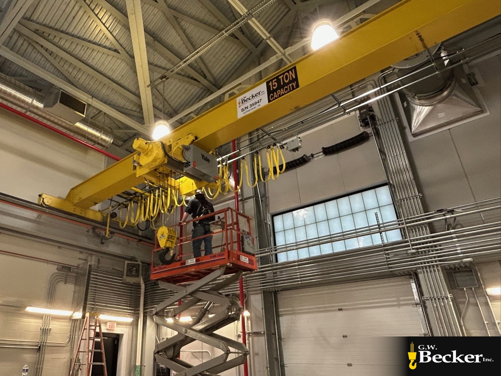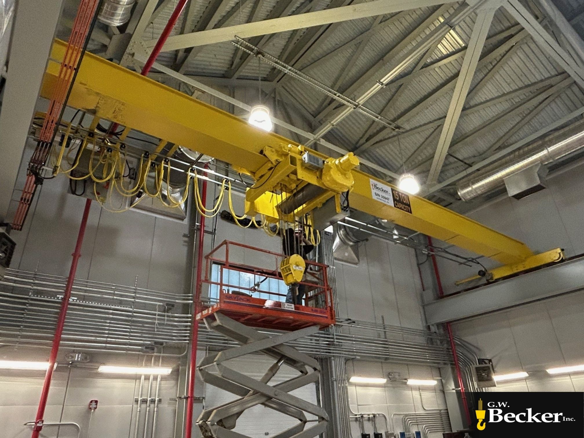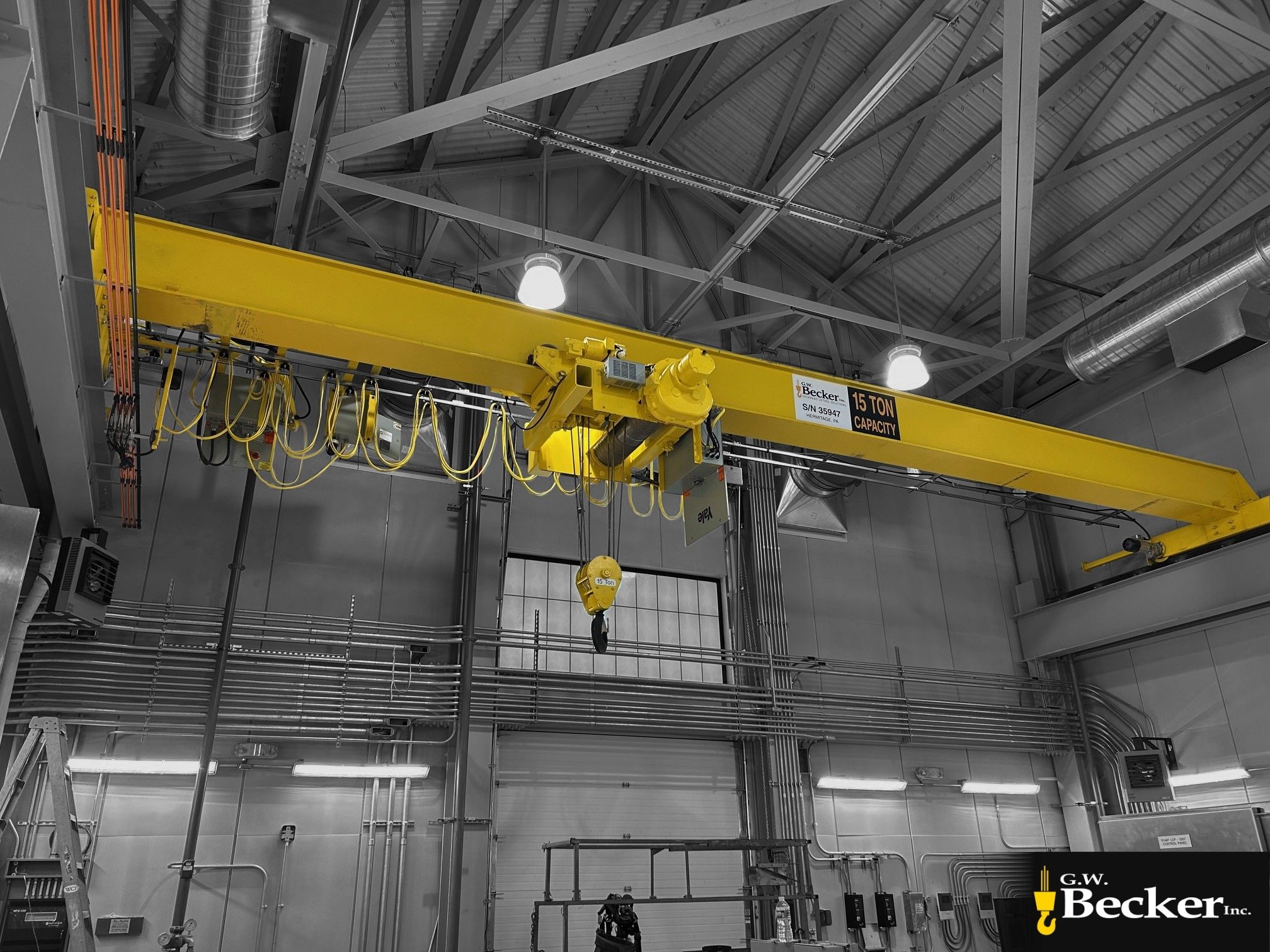 G.W. Becker, Inc. engineered, manufactured, and installed a 15-ton top running single girder bridge crane equipped with a CMCO Cable King electric wire rope hoist for a municipal water pumping facility. The system was designed to handle critical maintenance operations, including servicing heavy pumps and auxiliary process equipment within the plant.